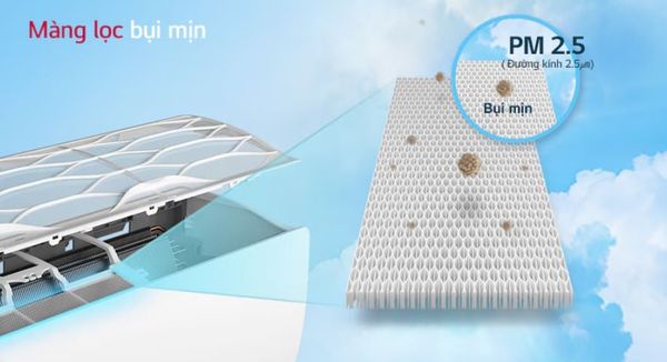 LG IEC24M2 được trang bị màng lọc sơ cấp kết hợp bộ lọc PM2.5. Màng lọc sơ cấp giúp giữ lại các hạt bụi thô, trong khi bộ lọc PM2.5 có khả năng loại bỏ đến 90% bụi mịn trong không khí.