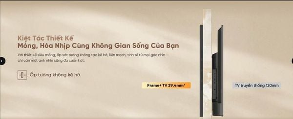 Google Tivi Coocaa khung tranh QLED 4K 55 inch 55L75 sở hữu thiết kế Frame+ Artistic và Visually Appealing, biến sản phẩm thành một tác phẩm nghệ thuật. Điểm nhấn là khả năng trở thành Wallpaper TV, hòa mình vào không gian như một bức tranh treo tường. Sự tinh tế trong thiết kế giúp tivi dễ dàng phù hợp với mọi phong cách nội thất.