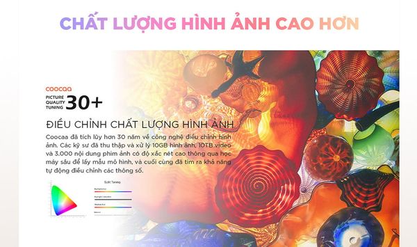 Công nghệ xử lý hình ảnh Chameleon Extreme 2.0 với AI tự động tinh chỉnh chất lượng. Âm thanh vòm Dolby Audio và Total Surround lấp đầy căn phòng, cho bạn cảm giác như đang hòa mình vào thế giới của nội dung đang xem. Đặc biệt, Coocaa còn quan tâm đến sức khỏe người dùng với tính năng bảo vệ mắt Eye Care 5.0 và điều khiển từ xa kháng khuẩn bằng nano bạc, mang lại sự an tâm cho cả gia đình.