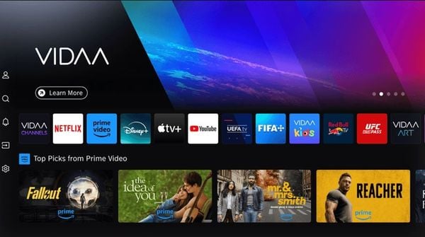 Các ứng dụng phổ biến tại Việt Nam như YouTube, Netflix, FPT Play, VieON, TV360 hay K+ đều được tích hợp sẵn, đáp ứng nhu cầu giải trí đa dạng. Ngoài ra, người dùng còn có thể tìm kiếm nội dung bằng giọng nói thông qua ứng dụng VIDAA trên điện thoại, hỗ trợ thao tác nhanh gọn và tiện lợi.