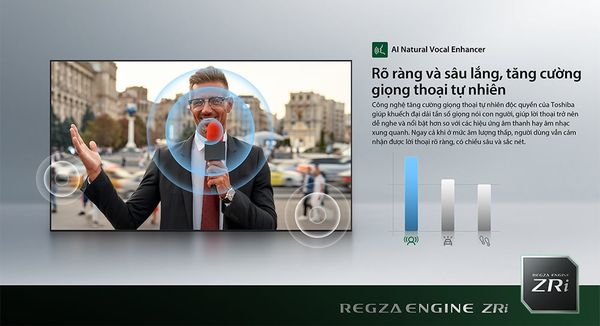 Regza Engine ZRi là bộ xử lý thông minh được thiết kế để tối ưu hóa mọi khía cạnh của trải nghiệm xem. Bộ xử lý này không chỉ nâng cấp nội dung lên gần chuẩn 4K mà còn phân tích và điều chỉnh hình ảnh và âm thanh theo thời gian thực. Bằng cách sử dụng các thuật toán AI tiên tiến, Regza Engine ZRi tự động điều chỉnh độ tương phản, độ sáng và màu sắc để mang lại hình ảnh sắc nét, chi tiết.