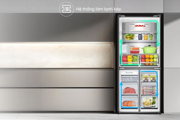 Hisense trang bị cho mẫu tủ này hệ thống 2 dàn lạnh độc lập (Dual Cooling System), mỗi ngăn có quạt và dàn lạnh riêng biệt, mang đến hiệu quả làm lạnh nhanh, đồng đều và ngăn ngừa lẫn mùi giữa các ngăn.