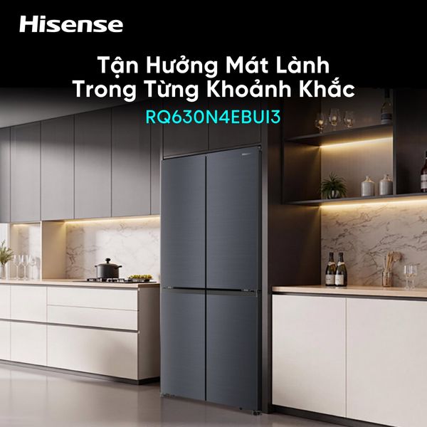 Tủ lạnh Hisense Inverter 488 lít RQ630N4EBUI3 là dòng tủ lạnh đa cánh cao cấp mang phong cách tối giản châu Âu, kết hợp công nghệ làm lạnh tiên tiến và khả năng quản lý thông minh qua ứng dụng ConnectLife. Với thiết kế sang trọng, dung tích lớn cùng nhiều tính năng tiện ích, sản phẩm hứa hẹn mang đến trải nghiệm bảo quản thực phẩm hoàn hảo cho mọi gia đình.