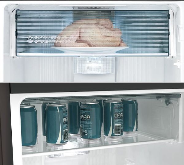 Một trong những yếu tố quan trọng nhất khi đánh giá tủ lạnh chính là khả năng bảo quản thực phẩm. Tủ lạnh Sharp 2 cánh SJ-XP470AE-DS được trang bị ngăn làm lạnh tăng cường Extra Cool Plus, có khả năng giảm nhiệt độ thấp hơn ngăn mát thông thường khoảng 2–3°C, giúp làm lạnh nhanh đồ uống, giữ độ tươi cho thực phẩm mới mua hoặc ướp thực phẩm trong thời gian ngắn mà không lo bị đông đá.