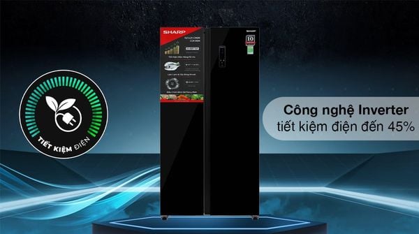 Công nghệ Inverter: Nhờ sử dụng công nghệ cảm biến AI, tủ lạnh Sharp có khả năng tự điều chỉnh nhiệt độ và duy trì độ lạnh ổn định, từ đó bảo quản tối ưu thực phẩm. Đồng thời, công nghệ này còn kiểm soát hoạt động máy nén để mang lại hiệu quả sử dụng tiết kiệm điện đến 45%.