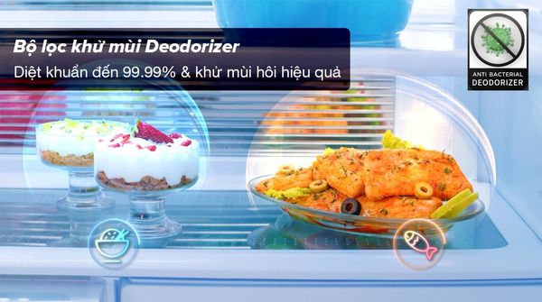 Bộ lọc khử mùi Deodorizer: Có khả năng diệt khuẩn đến 99.99% cùng với việc khử mùi hôi thực phẩm hiệu quả. Duy trì bầu không khí bên trong tủ luôn được tươi mát và sạch khuẩn để bảo quản thực phẩm được tốt hơn.