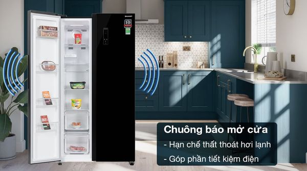 – Chuông báo khi quên đóng cửa: Đề phòng trẻ nhỏ mở cửa tủ lạnh quá lâu, giúp người dùng kịp thời đóng cửa để tránh làm cho hơi lạnh thất thoát ra ngoài quá nhiều, gây tốn điện năng mà thiết bị tiêu thụ.