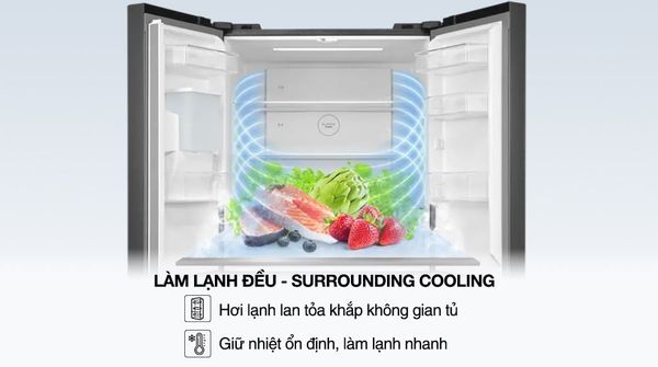 Hệ thống Surrounding Cooling lan tỏa hơi lạnh đồng đều đến mọi ngóc ngách, giữ nhiệt độ ổn định và giảm hiện tượng lạnh không đều.