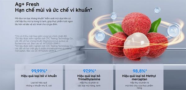Tủ lạnh MRC51HMPA được trang bị công nghệ ion bạc kháng khuẩn, giúp loại bỏ vi khuẩn và nấm mốc, đồng thời hạn chế mùi hôi trong tủ lạnh. Điều này đảm bảo rằng thực phẩm trong tủ luôn tươi ngon và bảo quản lâu dài hơn.