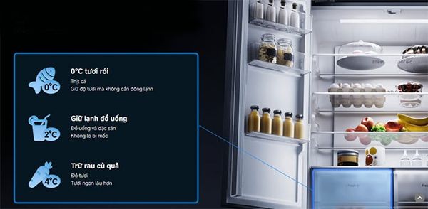 Ngoài ra, ngăn đông mềm i Fresh Convertible Zone có thể điều chỉnh nhiệt độ trong khoảng từ -1°C đến 5°C, giúp bảo quản thực phẩm một cách tối ưu.